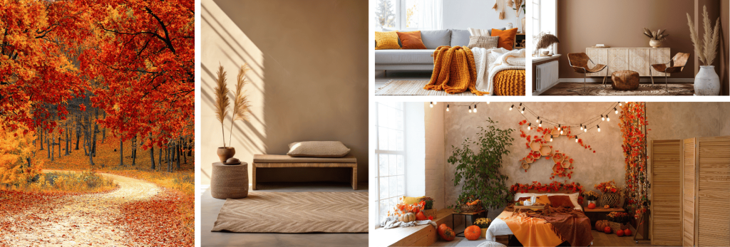 Nada representa melhor o outono do que uma paleta rica em tons quentes e naturais. Pense em cores como: